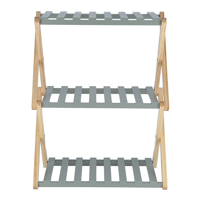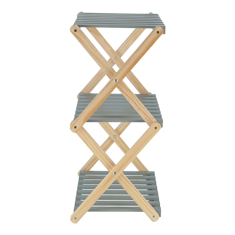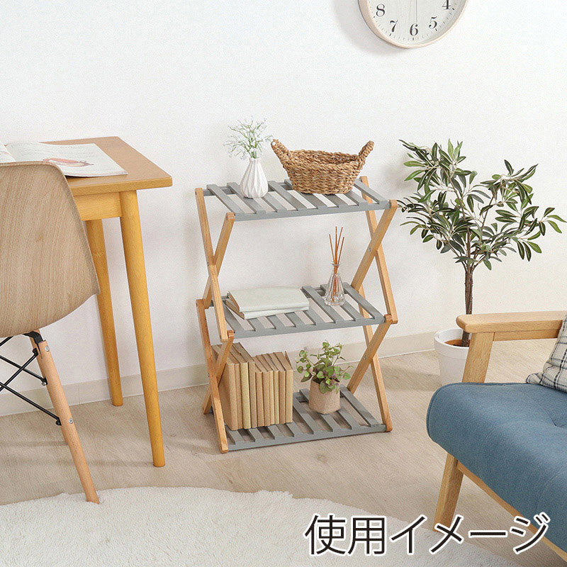 不二貿易 フォールディングウッドラック リム 3段 GY×NA 1個(ご注文単位4個)【直送品】