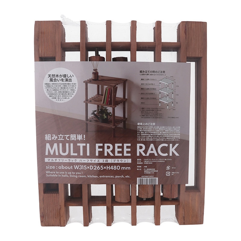 不二貿易 マルチフリーラック ハーフ 3段 ブラウン 1個(ご注文単位10個)【直送品】