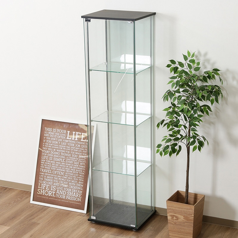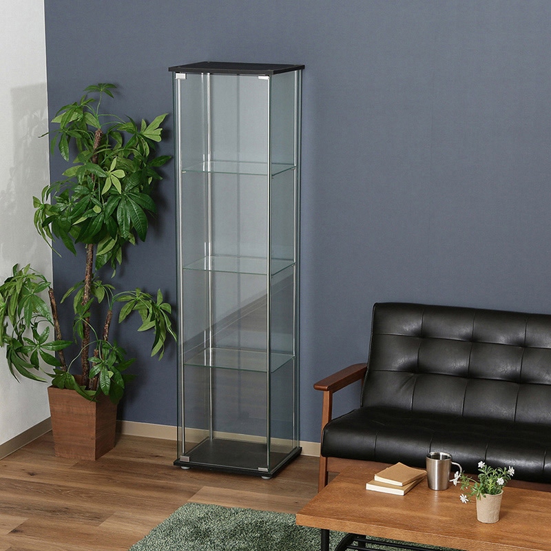 - フィギュアやアクセサリーをより美しく見せてくれる強化ガラスケース。埃から守り、綺麗な状態で展示できます。幅35.5×奥行28.5cmのスペースで自由にレイアウトを楽しめます。内寸高さは上から38cm、38.5cm、38.5cm、40cmです。扉はマグネット式で手軽に開閉できます。360度どの角度からでも見える全面ガラスタイプです。ガラス板をしっかり吸着して固定する吸盤付きのダボを採用。透明感のあるガラスは全面が強化ガラス。5mmの厚さがあり高級感を演出してくれます。●棚板・側板:強化ガラス●重量:37kg●お客様組立品