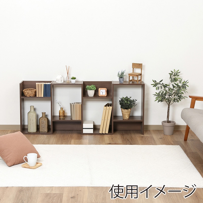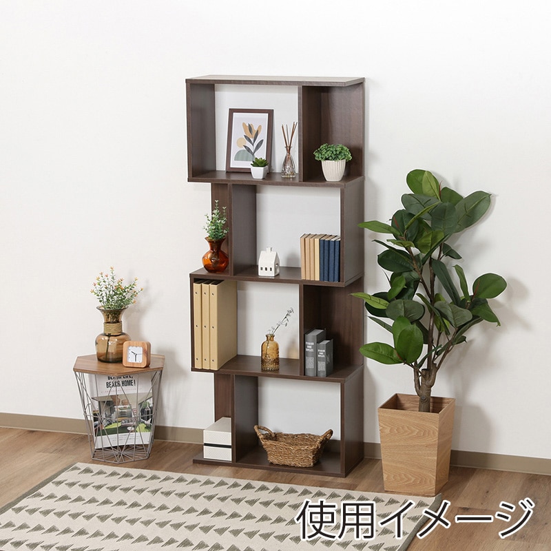 不二貿易 S型ディスプレイラック 4段 ミディアムブラウン 1台(ご注文単位1台)【直送品】