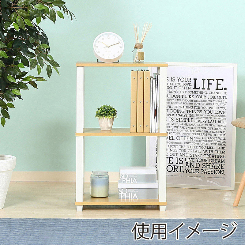 不二貿易 フィット 3段ラック ナチュラル×ホワイト 1台(ご注文単位1台)【直送品】