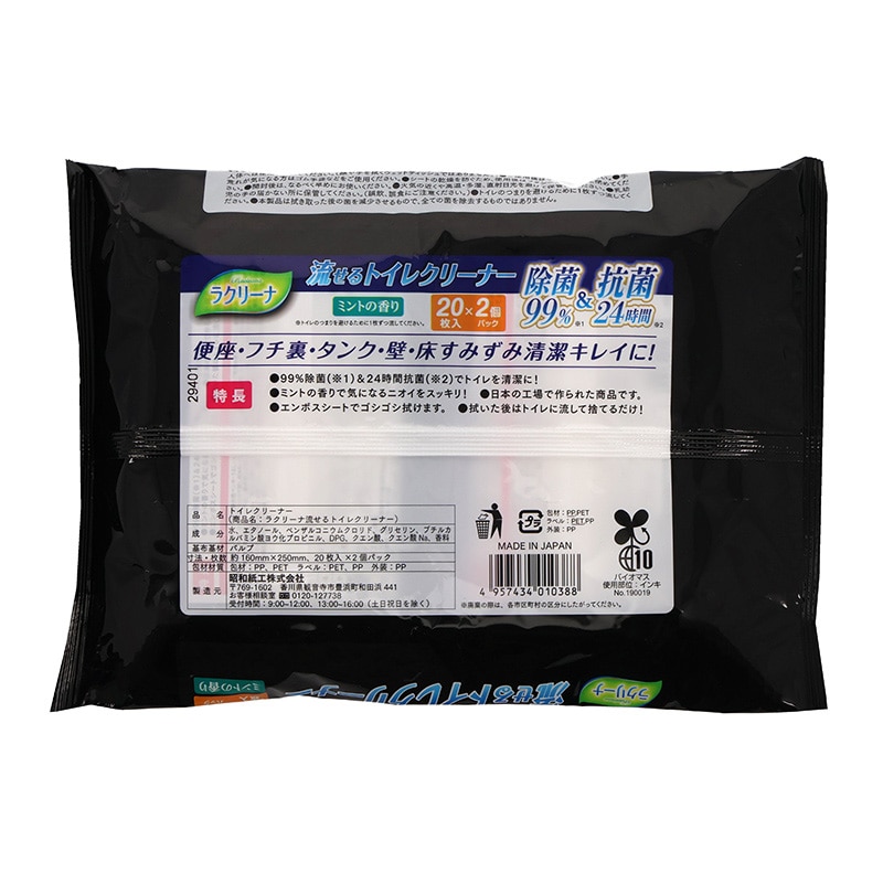 昭和紙工 ラクリーナ流せるトイレクリーナー 20枚 2個パック 1束