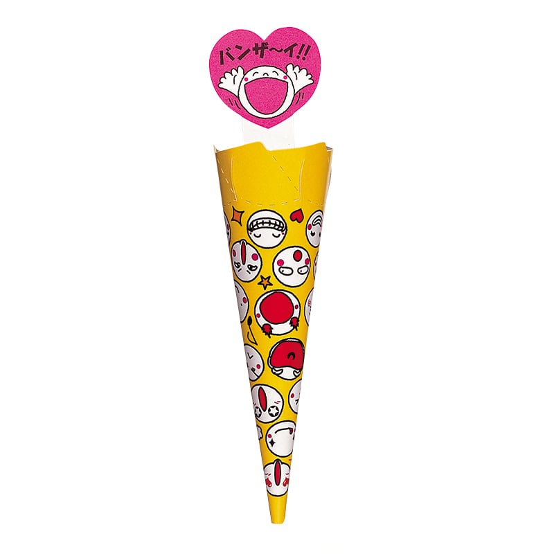ゆかいなイラストを描いた紙札が飛出す、散らからないタイプのメッセージクラッカーです。お徳用。紙札に描かれた顔は合計70種類。