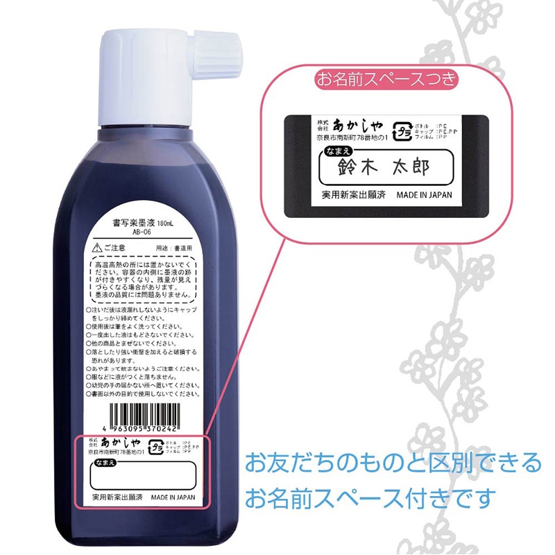 あかしや 書写楽墨液 180ml AB-06 1本(ご注文単位6本)【直送品】