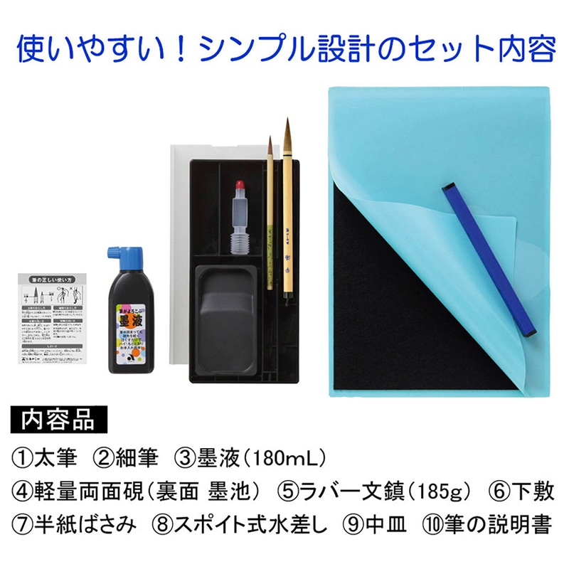 呉竹 書道セット GA-432S 青タイプ GA432-12 1セット(ご注文単位1セット)【直送品】