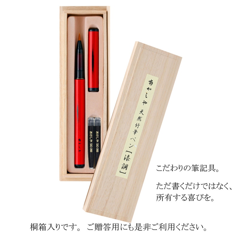 あかしや 天然竹筆ペン 漆調 赤軸 桐箱入り AK2500UK-RD 1個(ご注文単位1個)【直送品】