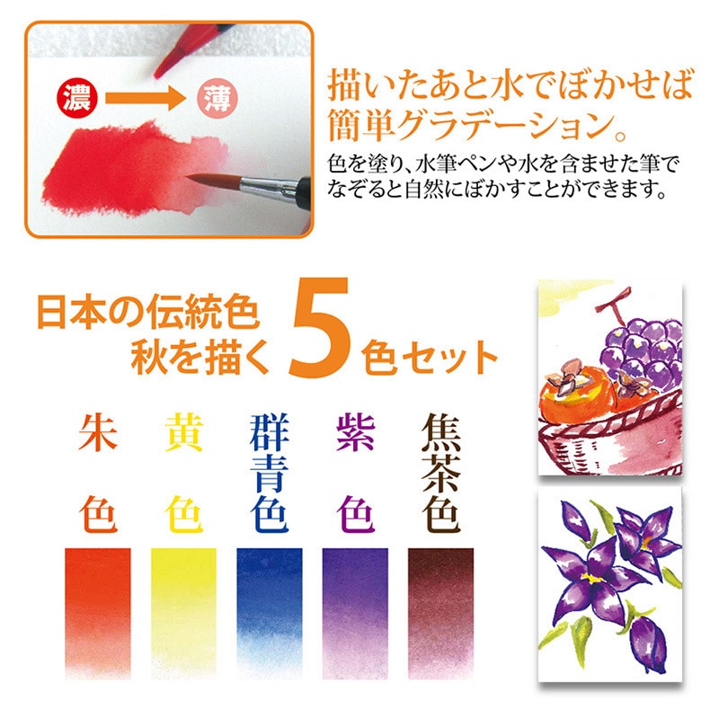 あかしや 水彩毛筆 彩 秋を描く5色セット CA200/5VC 1個(ご注文単位1個)【直送品】
