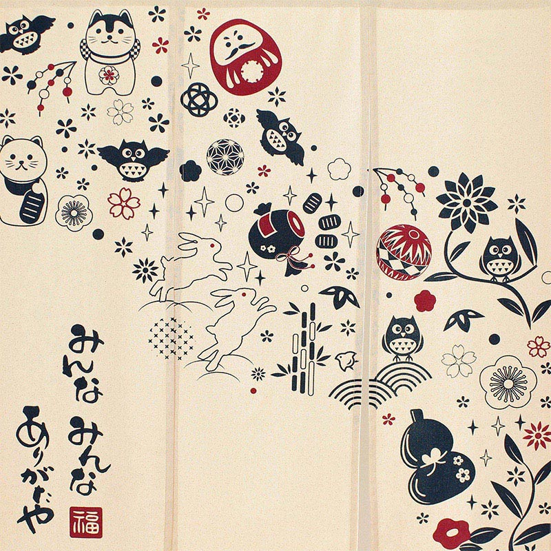 ナルミ 和風のれん 3連 ありがたや 85×90cm せせらぎ 14-602 1枚(ご注文単位1枚)【直送品】