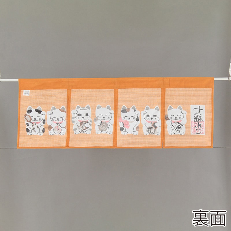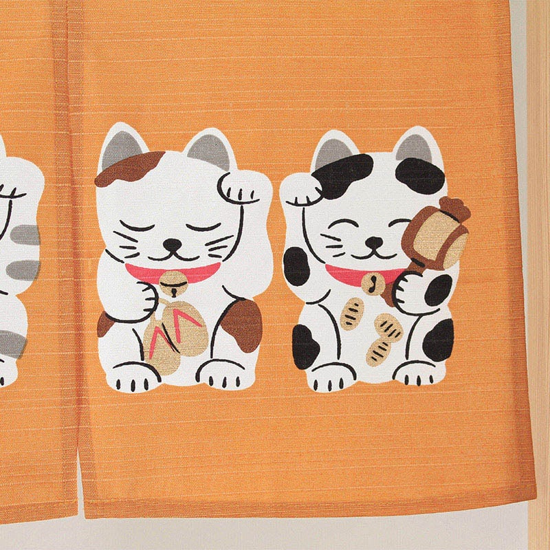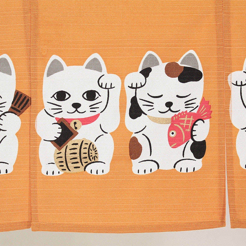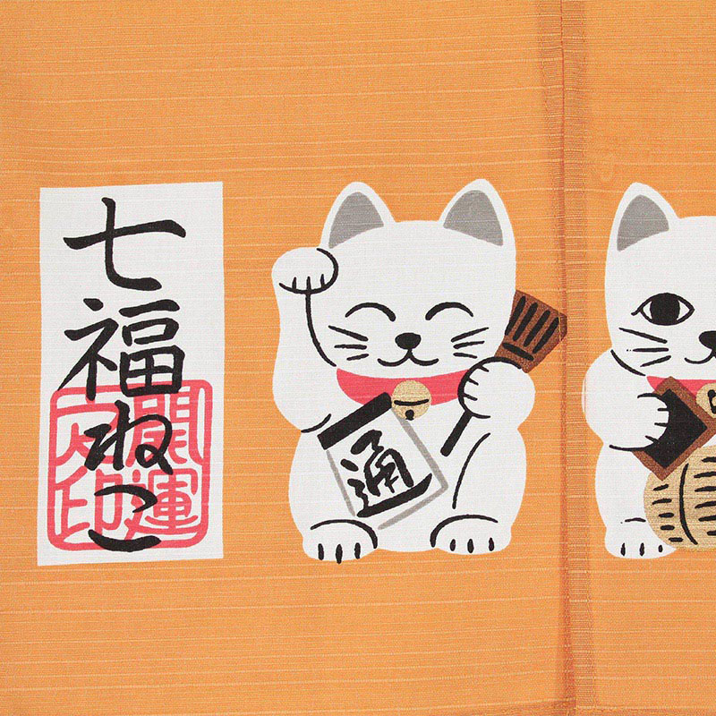 ナルミ 和風のれん 85×30cm 七福ねこ 黄 17-129 1枚(ご注文単位1枚)【直送品】