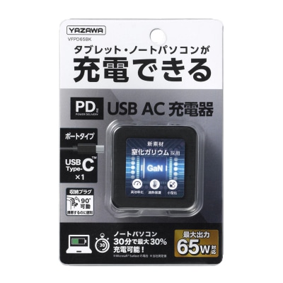 ヤザワコーポレーション PD対応USBアダプター 1ポート 65W ブラック VFPD65BK 1個(ご注文単位1個)【直送品】