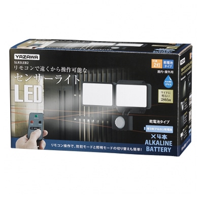 ヤザワコーポレーション LEDセンサーライト 乾電池式 防雨・調光タイプ 6W白色LED×2灯 リモコン付 SLR3LEB2 1個(ご注文単位1個)【直送品】