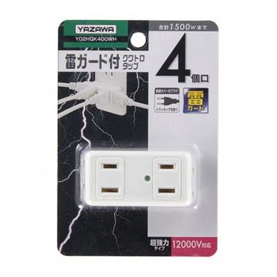 ヤザワコーポレーション 強力雷ガード付クワトロタップ 4個口 ホワイト Y02HQK400WH 1個(ご注文単位1個)【直送品】