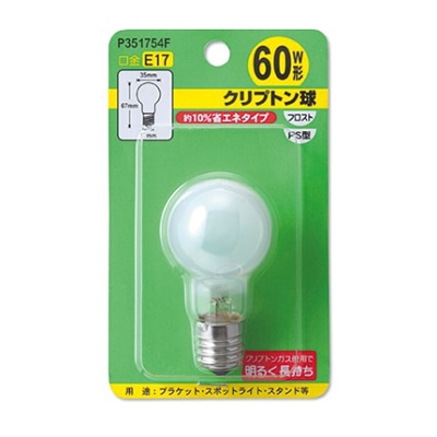 ヤザワコーポレーション 白熱電球 省エネクリプトンランプ P35 E17 60W形 フロスト P351754F 1個(ご注文単位1個)【直送品】