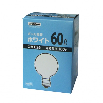 ヤザワコーポレーション 白熱電球 ボール電球 60W形 ホワイト GW100V57W70 1個(ご注文単位1個)【直送品】