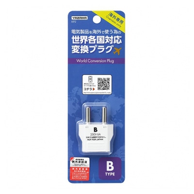ヤザワコーポレーション トラベル 海外用電源プラグ Bタイプ KP2 1個(ご注文単位1個)【直送品】