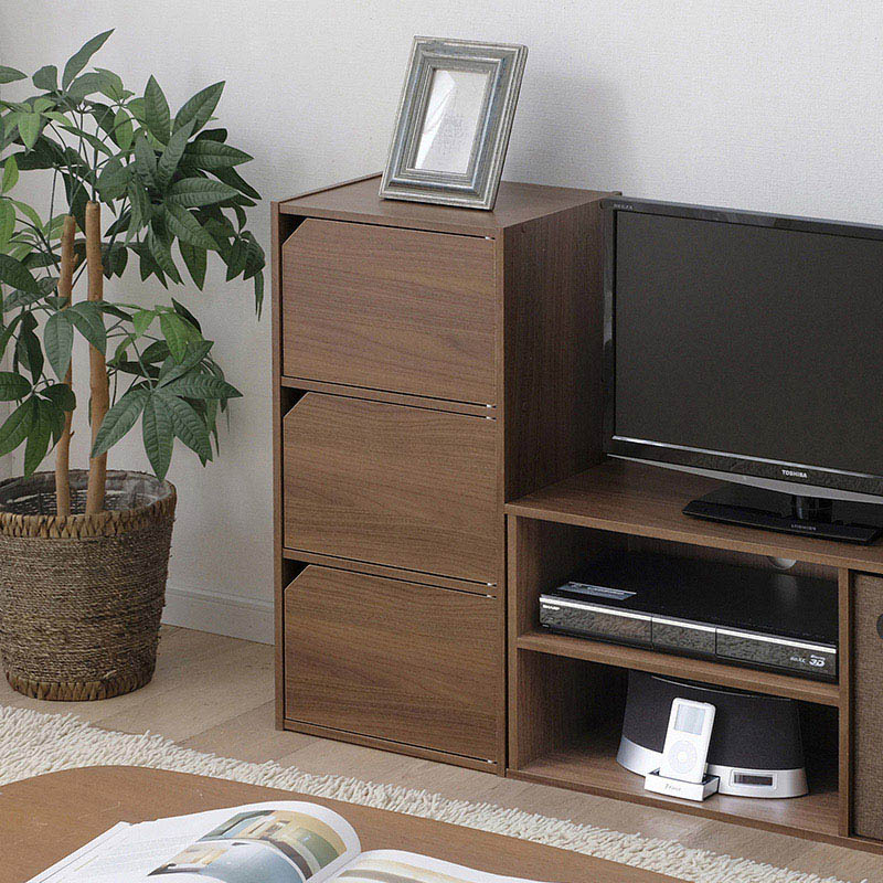 アイリスオーヤマ モジュールボックス 扉付 3段 36.6×73.2 ウォールナット MDB-3D 1台(ご注文単位1台)【直送品】
