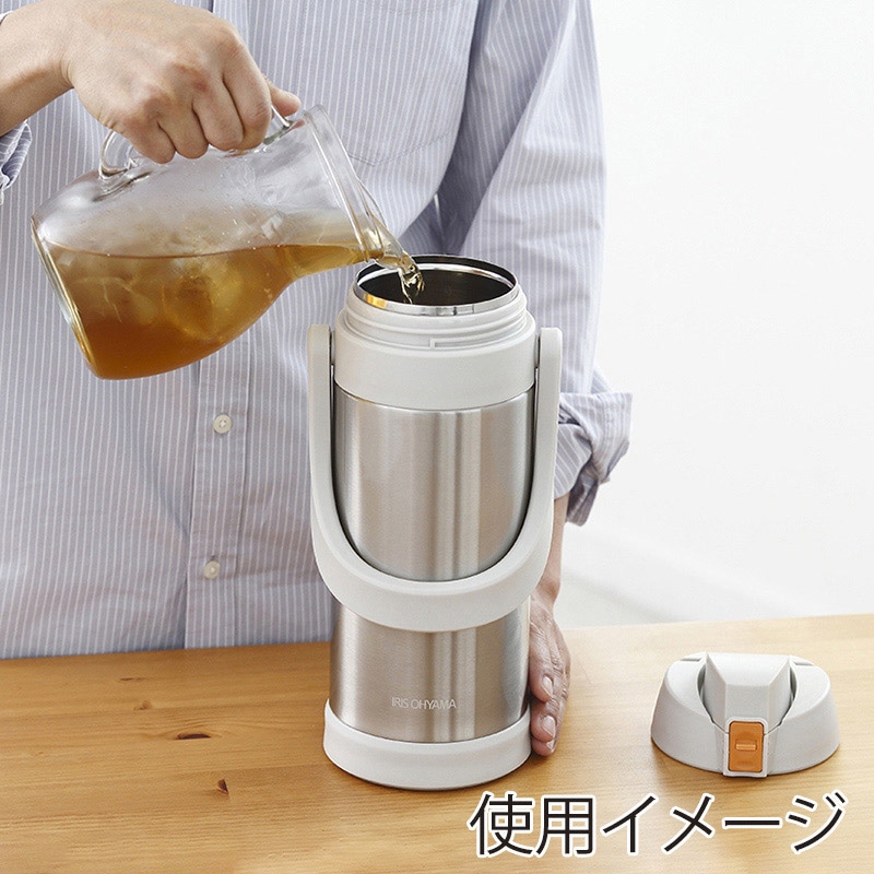 アイリスオーヤマ ステンレスケータイボトル スポーツジャグ 2L アイボリー SJ-2000 1個(ご注文単位1個)【直送品】