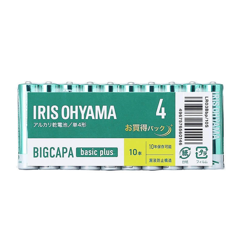アイリスオーヤマ アルカリ乾電池 ビッグキャパ basic+ 単4形 10本パック LR03Bbp/10S 1個(ご注文単位1個)【直送品】