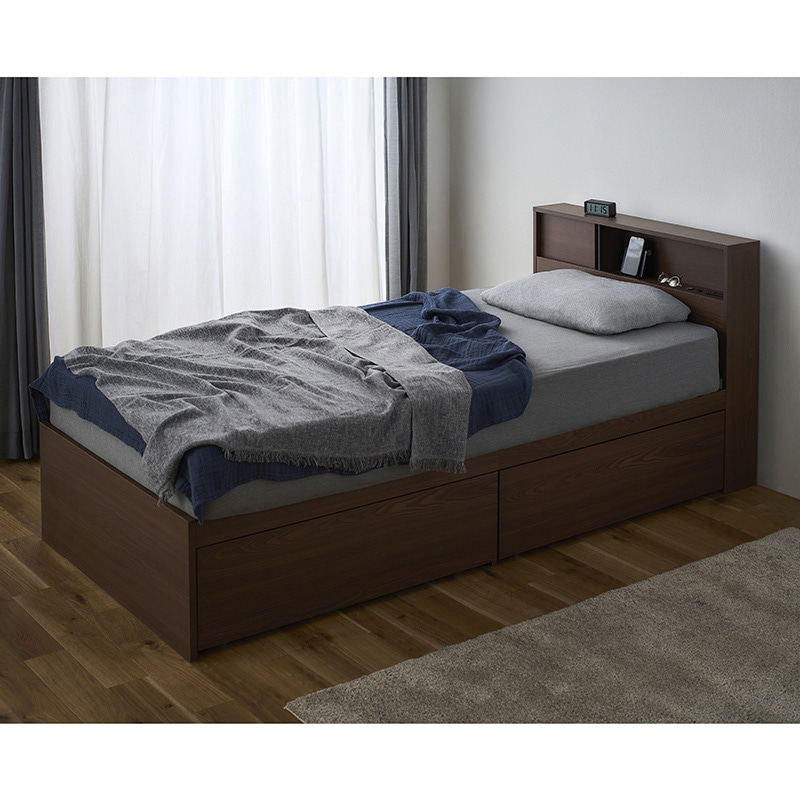 アイリスオーヤマ 収納ベッド スライド扉 シングル ウォールナット/ブラック SDB-S 1台(ご注文単位1台)【直送品】