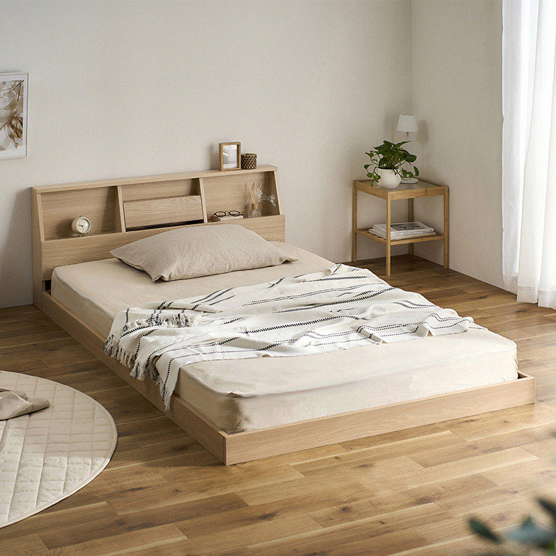 アイリスオーヤマ フロアベッド 棚付き セミダブル ナチュラル FBF-SD 1台(ご注文単位1台)【直送品】
