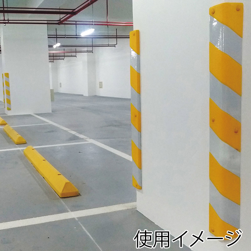 駐車場の柱や、ぶつかりやすい角に。白色部分は反射素材なので夕暮れ、夜間時の視認性が高いです。ポリウレタン製で屋外使用に適しています。非常に柔らかく弾力性に優れた素材です。耐摩耗性にも優れています。