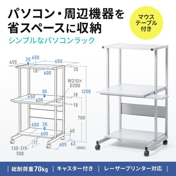 サンワサプライ パソコンラック 650×655×1200mm RAC-EC73 1個(ご注文単位1個)【直送品】