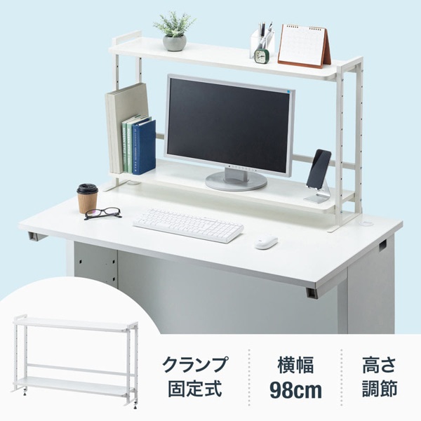 サンワサプライ クランプ式机上ラック 2段 ホワイト MR-LC307W 1個(ご注文単位1個)【直送品】