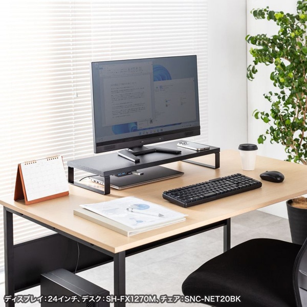サンワサプライ USBハブ付モニター台 W600mm ブラック MR-LC215BK 1個(ご注文単位1個)【直送品】