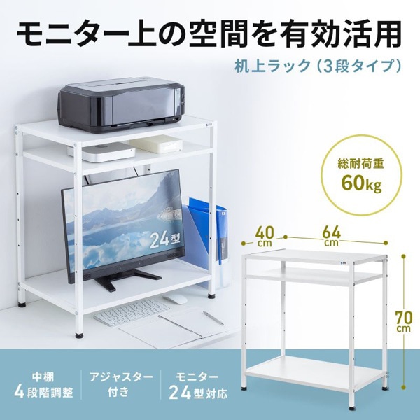 サンワサプライ 机上ラック 640×400×700mm 3段 MR-70W 1個(ご注文単位1個)【直送品】