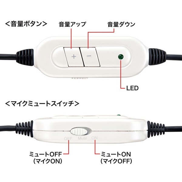 サンワサプライ USBヘッドセット オーバーヘッド両耳 ホワイト MM-HSUSB16WN 1個(ご注文単位1個)【直送品】