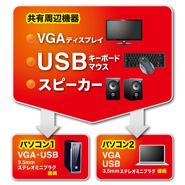 サンワサプライ パソコン自動切替器 2:1 SW-KVM2AUUN 1個(ご注文単位1個)【直送品】