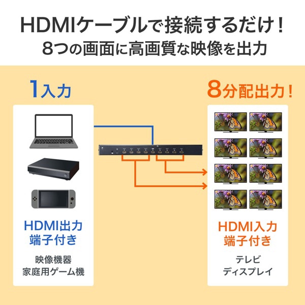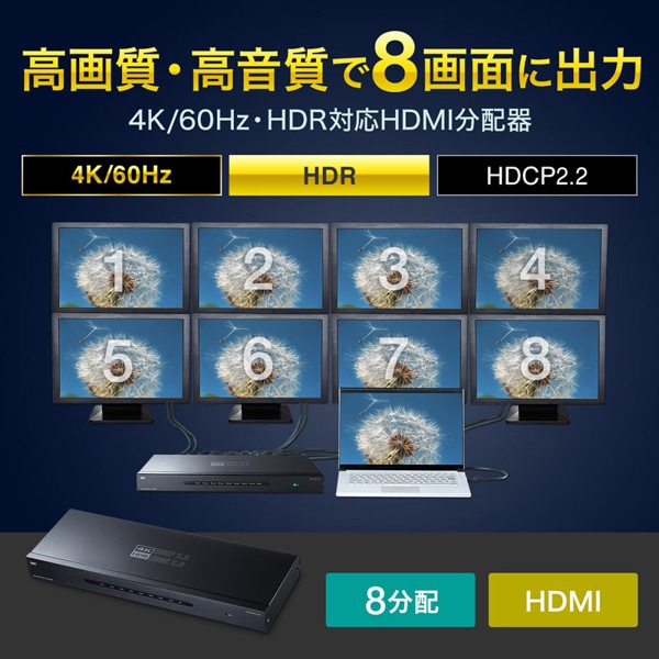 サンワサプライ HDMI分配器 4K/60Hz・HDR対応 8分配 VGA-HDRSP8 1個(ご注文単位1個)【直送品】