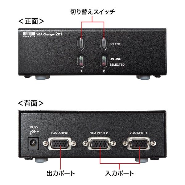 サンワサプライ ディスプレイ切替器 2回路 SW-EV2N2 1個(ご注文単位1個)【直送品】