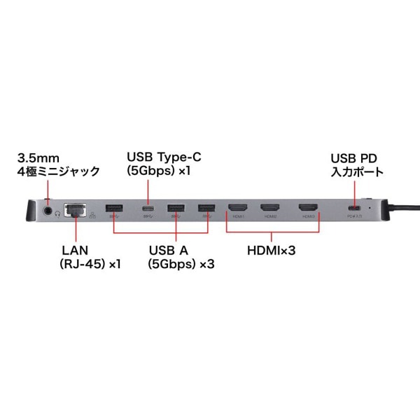 サンワサプライ USB Type-C ドッキングステーション HDMI×3画面出力対応 USB-CVDK13 1個(ご注文単位1個)【直送品】