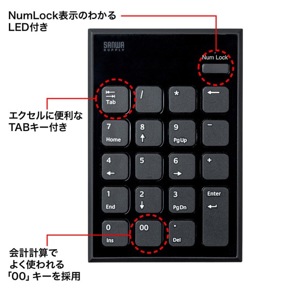 サンワサプライ Bluetoothテンキー ブラック NT-BT21BK 1個(ご注文単位1個)【直送品】
