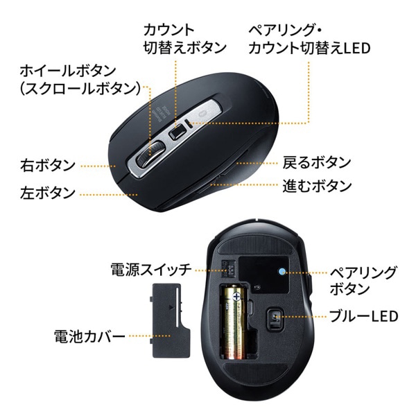 サンワサプライ Bluetooth5.0 ブルーLEDマウス ブラック MA-BTBL162BK 1個(ご注文単位1個)【直送品】