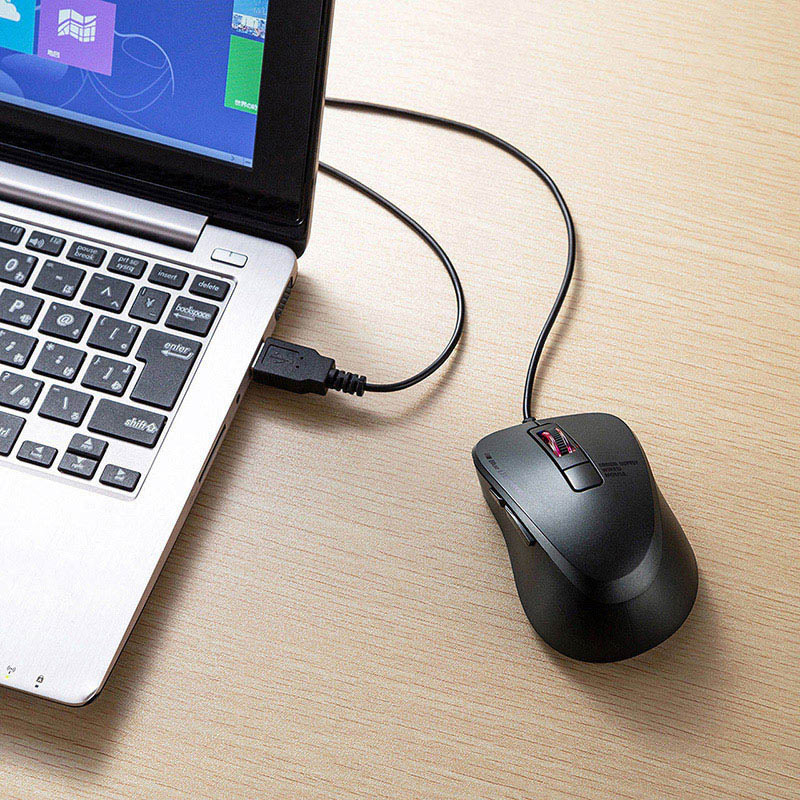 サンワサプライ 静音有線ブルーLEDマウス 5ボタン ブラック MA-BL156BK 1個(ご注文単位1個)【直送品】
