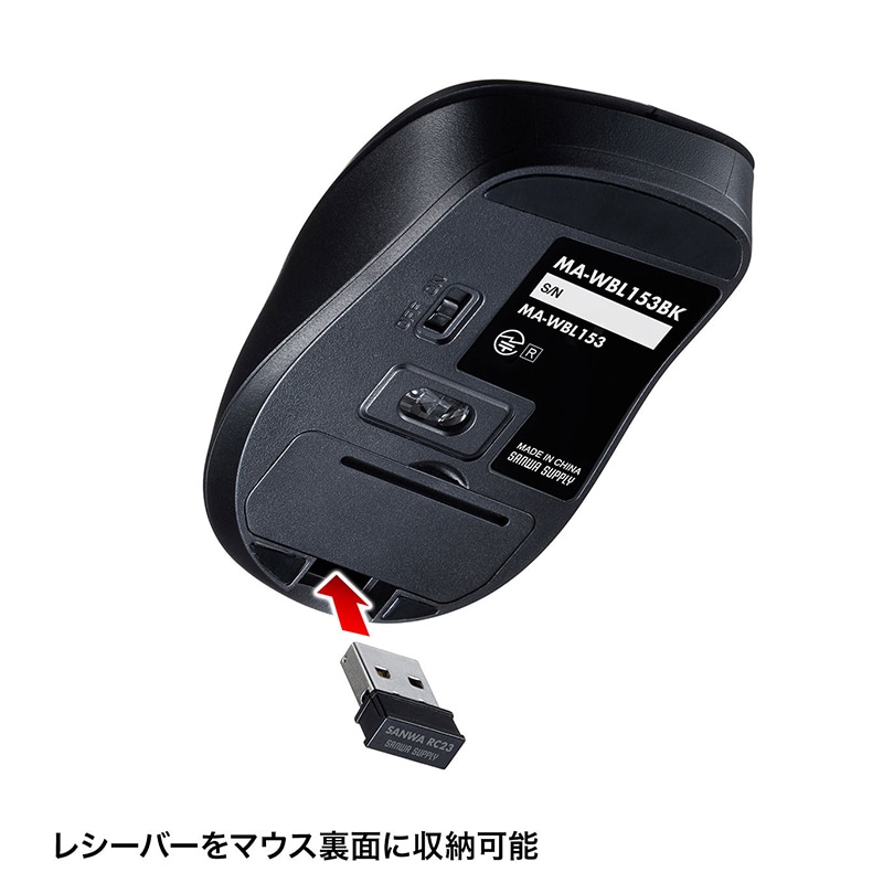 サンワサプライ 静音ワイヤレスブルーLEDマウス 5ボタン ブラック MA-WBL153BK 1個(ご注文単位1個)【直送品】