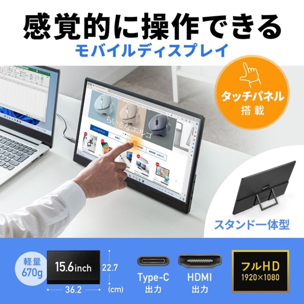 サンワサプライ タッチ機能搭載モバイルモニター DP-06 1個(ご注文単位1個)【直送品】