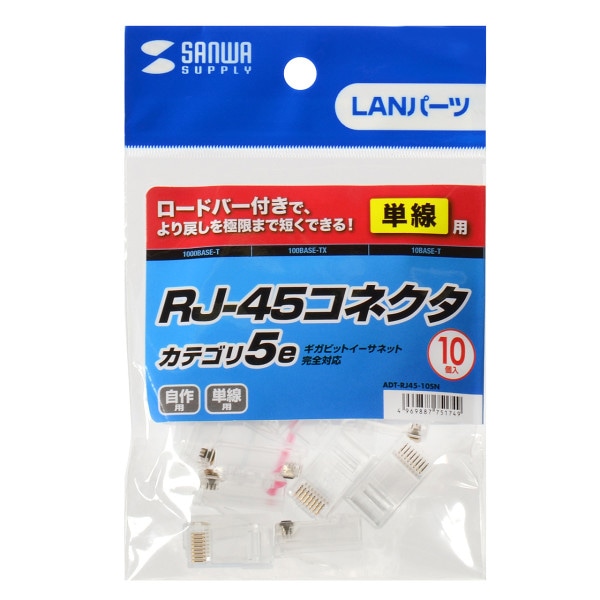 サンワサプライ RJ-45 コネクタ 単線用 10個入 ADT-RJ45-10SN 1個(ご注文単位1個)【直送品】