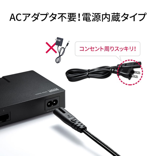 サンワサプライ ギガビット対応スイッチングハブ マグネット付き 5ポート LAN-GIGAP502BK 1個(ご注文単位1個)【直送品】