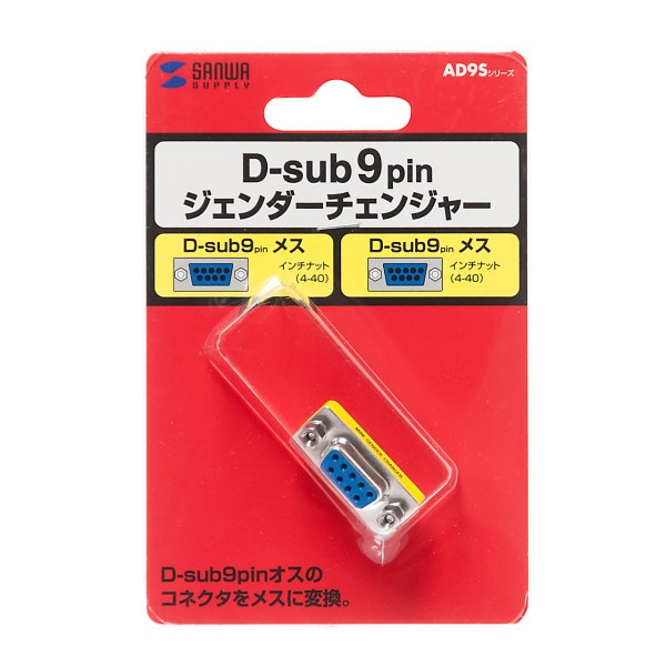 サンワサプライ ジェンダーチェンジャー D-sub9pinコネクタメスメス AD9S-FFK 1個(ご注文単位1個)【直送品】