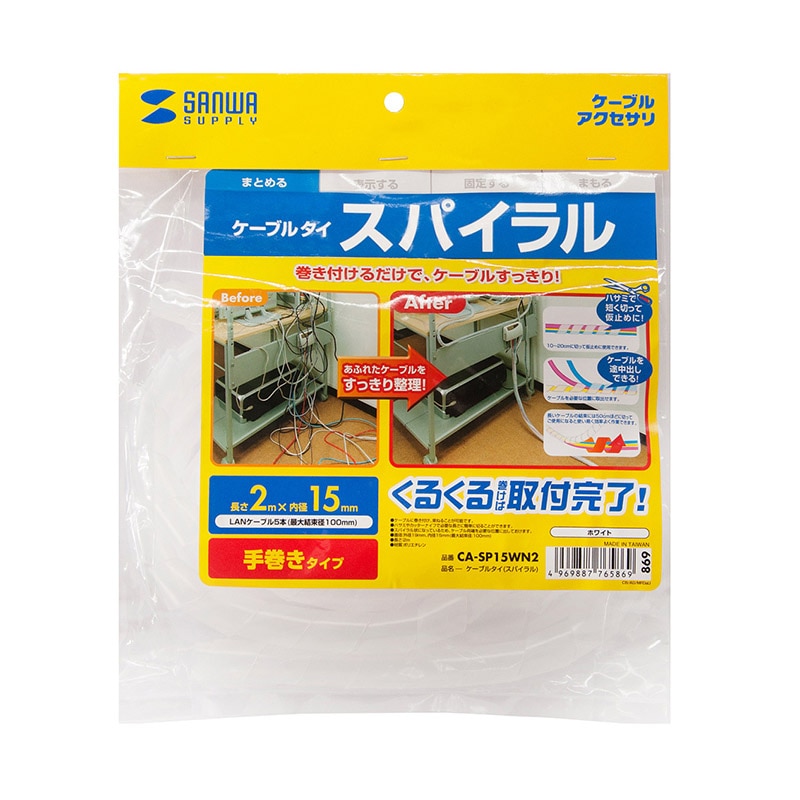 サンワサプライ ケーブルタイ スパイラル 2m巻き 内寸直径15mm ホワイト CA-SP15WN2 1個(ご注文単位1個)【直送品】