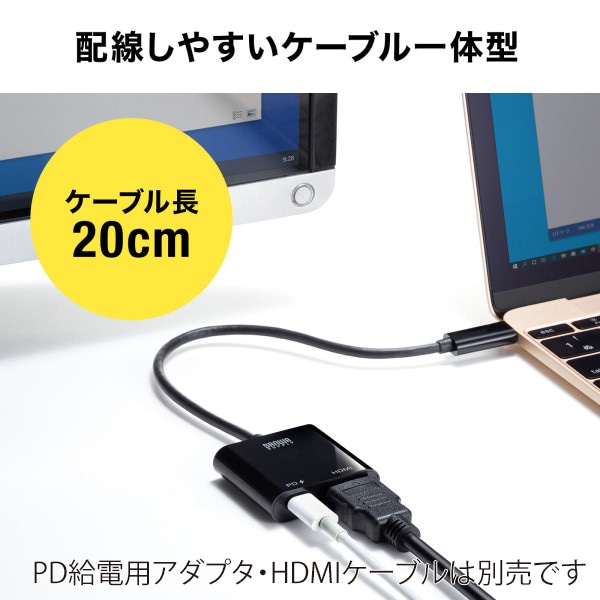 サンワサプライ USB TypeC-HDMI 変換アダプタ 4K/60Hz/PD対応 AD-ALCPHDPD 1個(ご注文単位1個)【直送品】