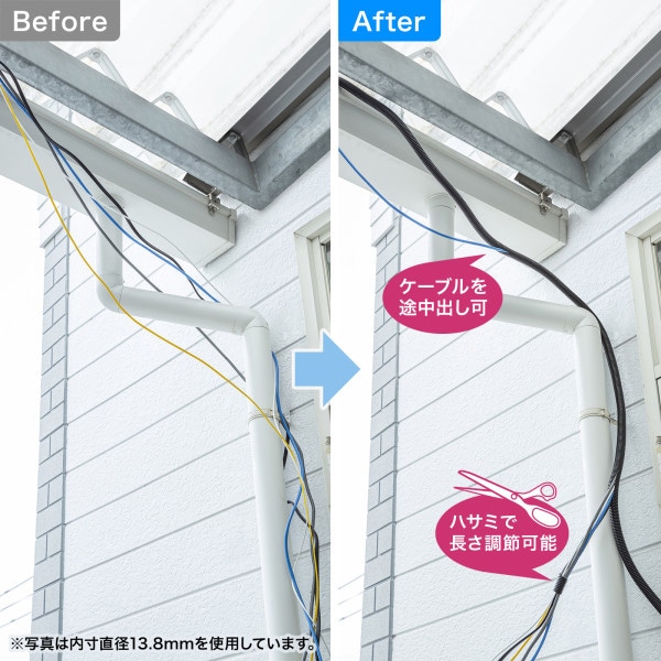 サンワサプライ コルゲートチューブ ブラック 2m巻・内寸直径7.4mm CA-302 1個(ご注文単位1個)【直送品】
