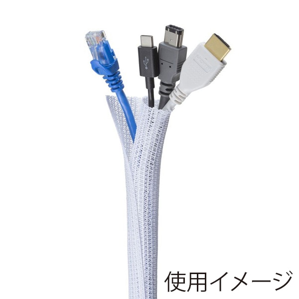 サンワサプライ 編組ケーブルスリーブ ホワイト 2m巻 内寸直径19mm CA-SL19W2 1個(ご注文単位1個)【直送品】