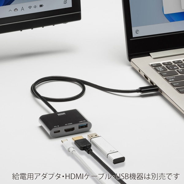 サンワサプライ USB TypeC-HDMI 変換アダプタ 4K/PD対応/USBハブ付 AD-ALCPHDPD02 1個(ご注文単位1個)【直送品】