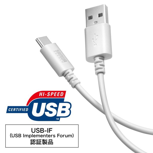 サンワサプライ USB2.0 TypeC-Aケーブル 0.5m ホワイト KU-CA05W 1個(ご注文単位1個)【直送品】