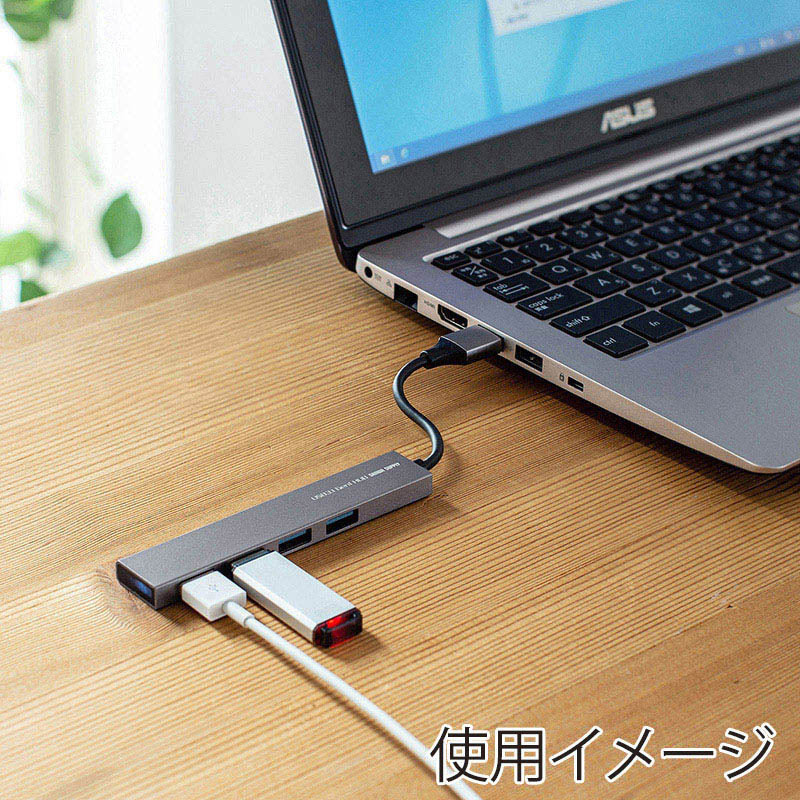 サンワサプライ USB3.2 Gen1 4ポート スリムハブ USB-3H423SN 1個(ご注文単位1個)【直送品】