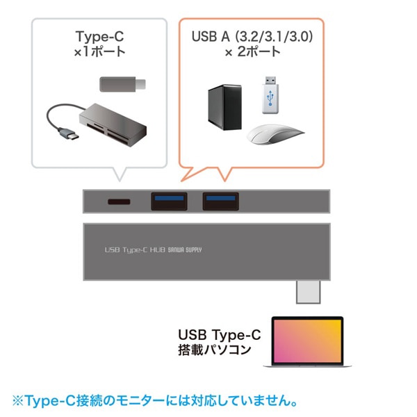 サンワサプライ USB Type-C スリムハブ 3ポート USB-3TCH22SN 1個(ご注文単位1個)【直送品】